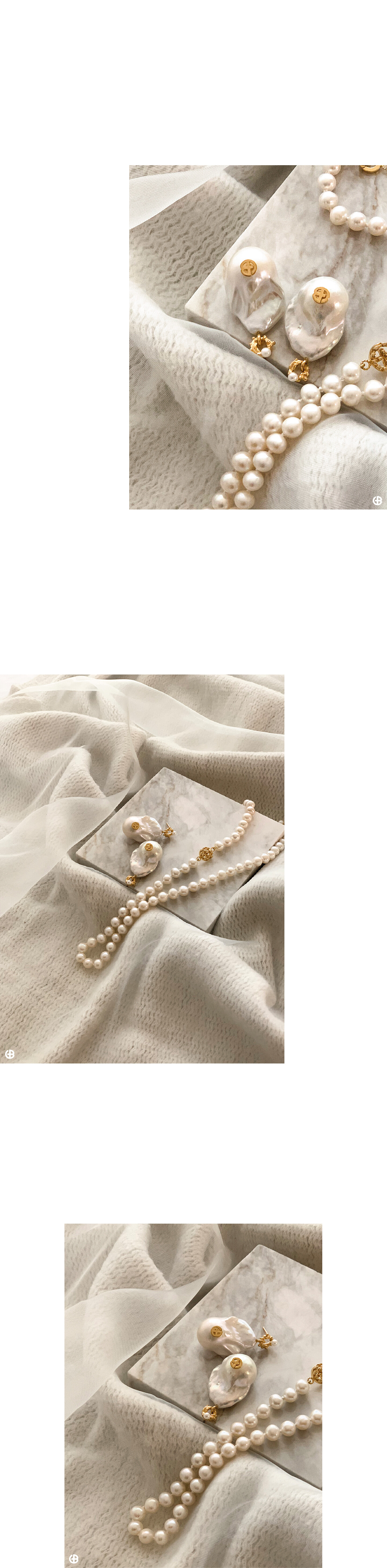 바로크 진주 위의 헤드장식은 작은 담수진주로 마무리하여 착용하였을 때 크고 작은 화이트 터치가 대비되면서 화려한 디테일을 부여합니다.