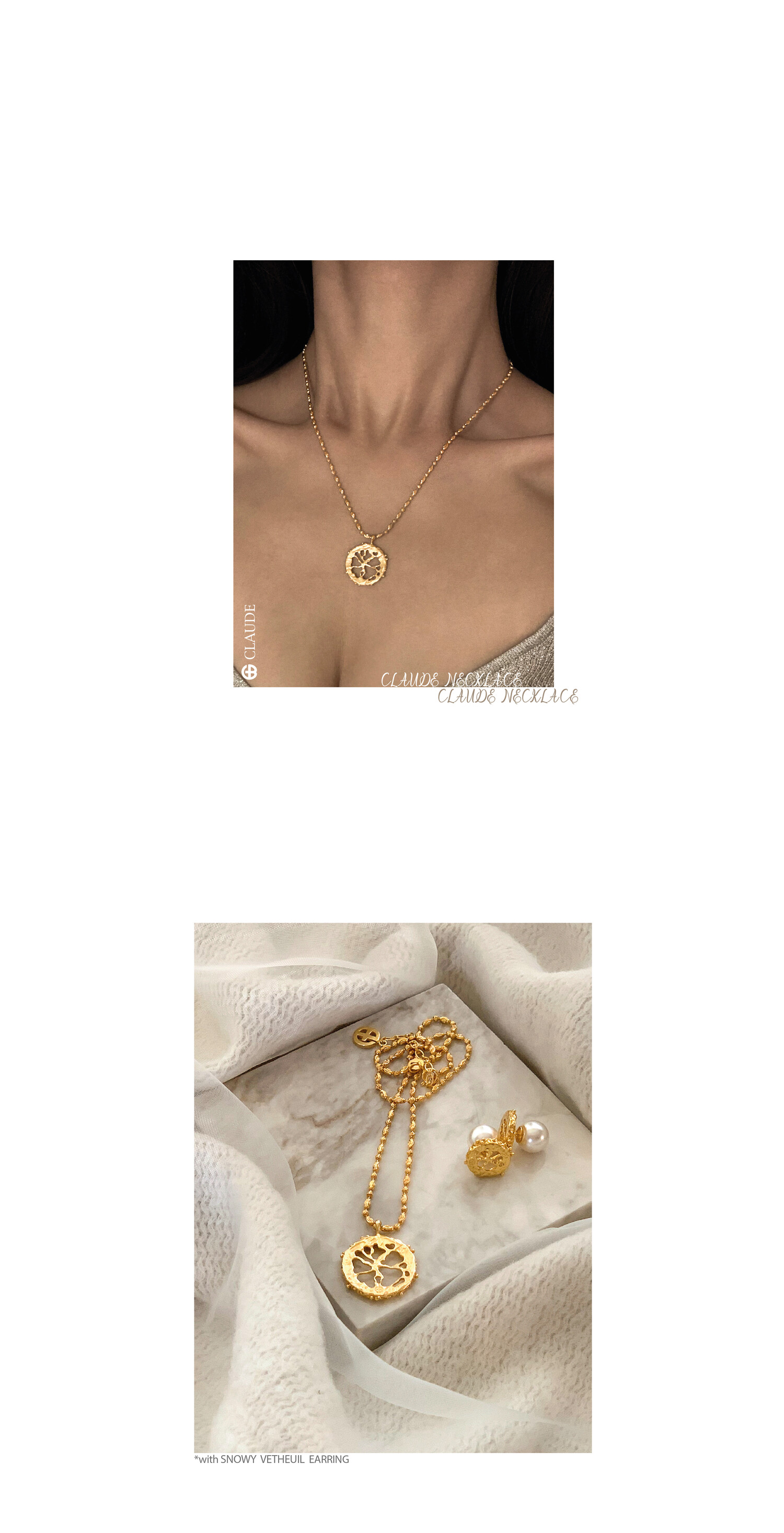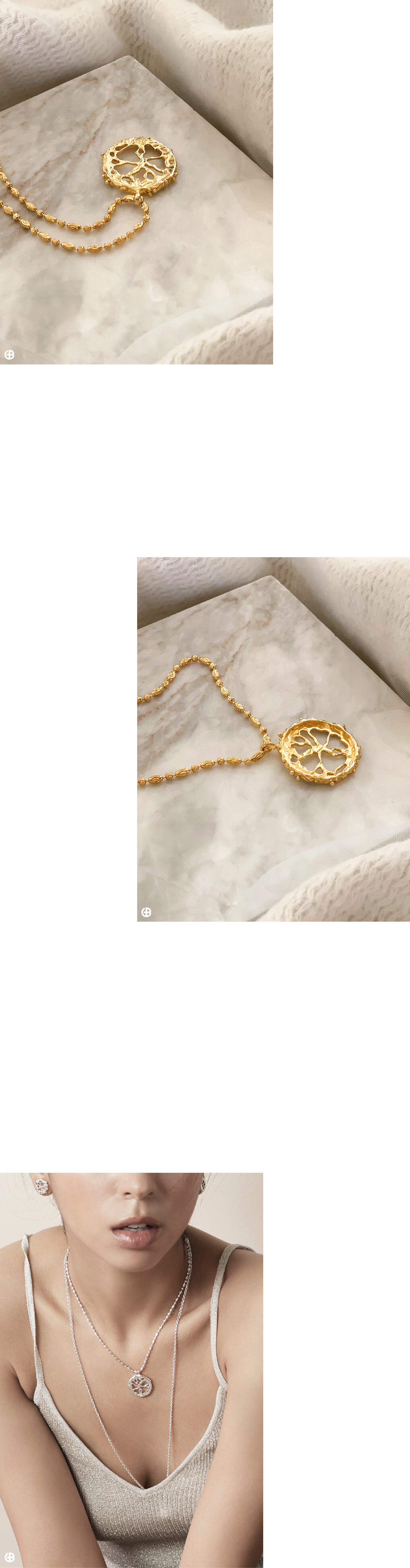 유기적 문양의 볼륨감 있는 체인이 만들어내는 골드빛 점과 상징적 펜던트가 연결되어 다 함께 한 폭의 디자인을 그려내도록 구상되었습니다.