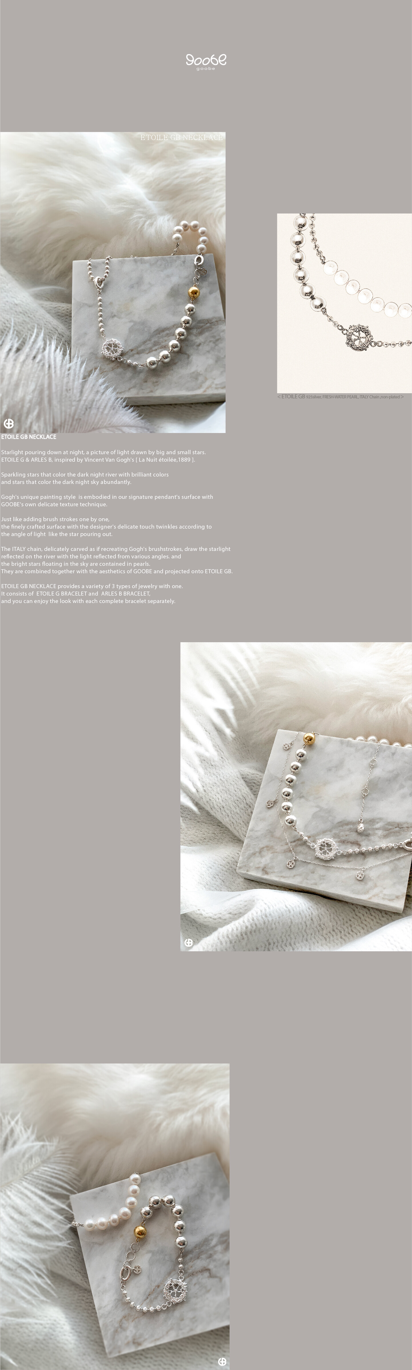 The ITALY chain, delicately carved as if recreating Gogh's brushstrokes, draw the starlight reflected on the river with the light reflected from various angles. and the bright stars floating in the sky are contained in pearls. They are combined together with the aesthetics of GOOBE and projected onto ETOILE GB.