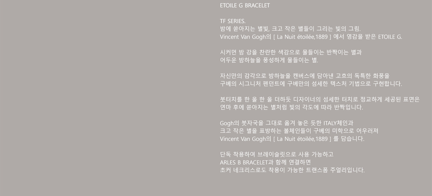 The ITALY chain, which looks like Gogh's brushstrokes, and ball chains that represent large and small stars are combined with the aesthetics of GOOBE to contain Vincent Van Gogh's [La Nuitétoileée, 1889].