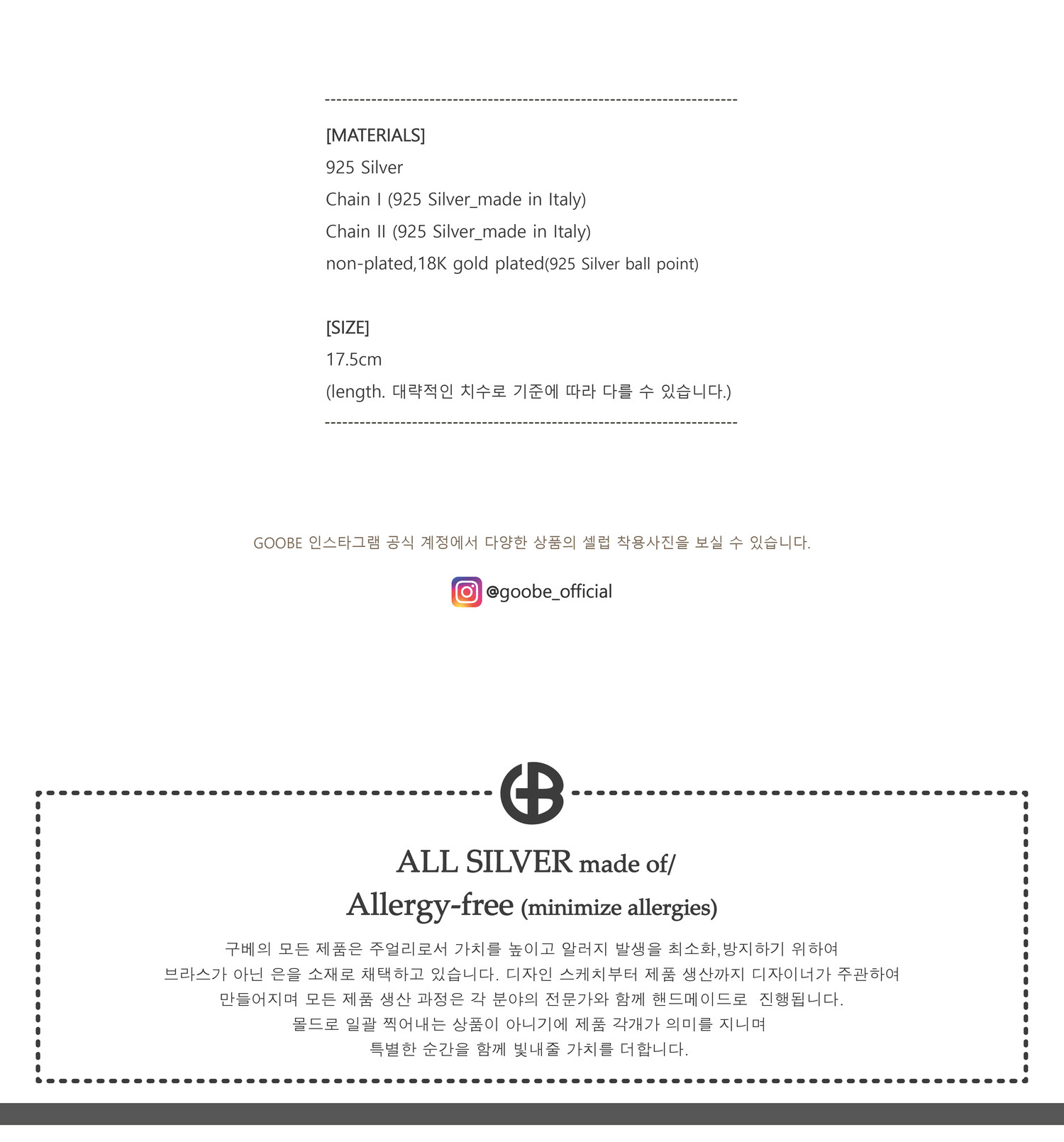 [MATERIALS] 925 Silver Chain I (925 Silver_made in Italy) Chain II (925 Silver_made in Italy) non-plated,18K gold plated(925 Silver ball point)