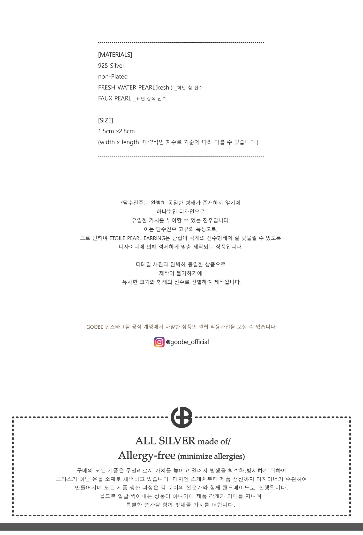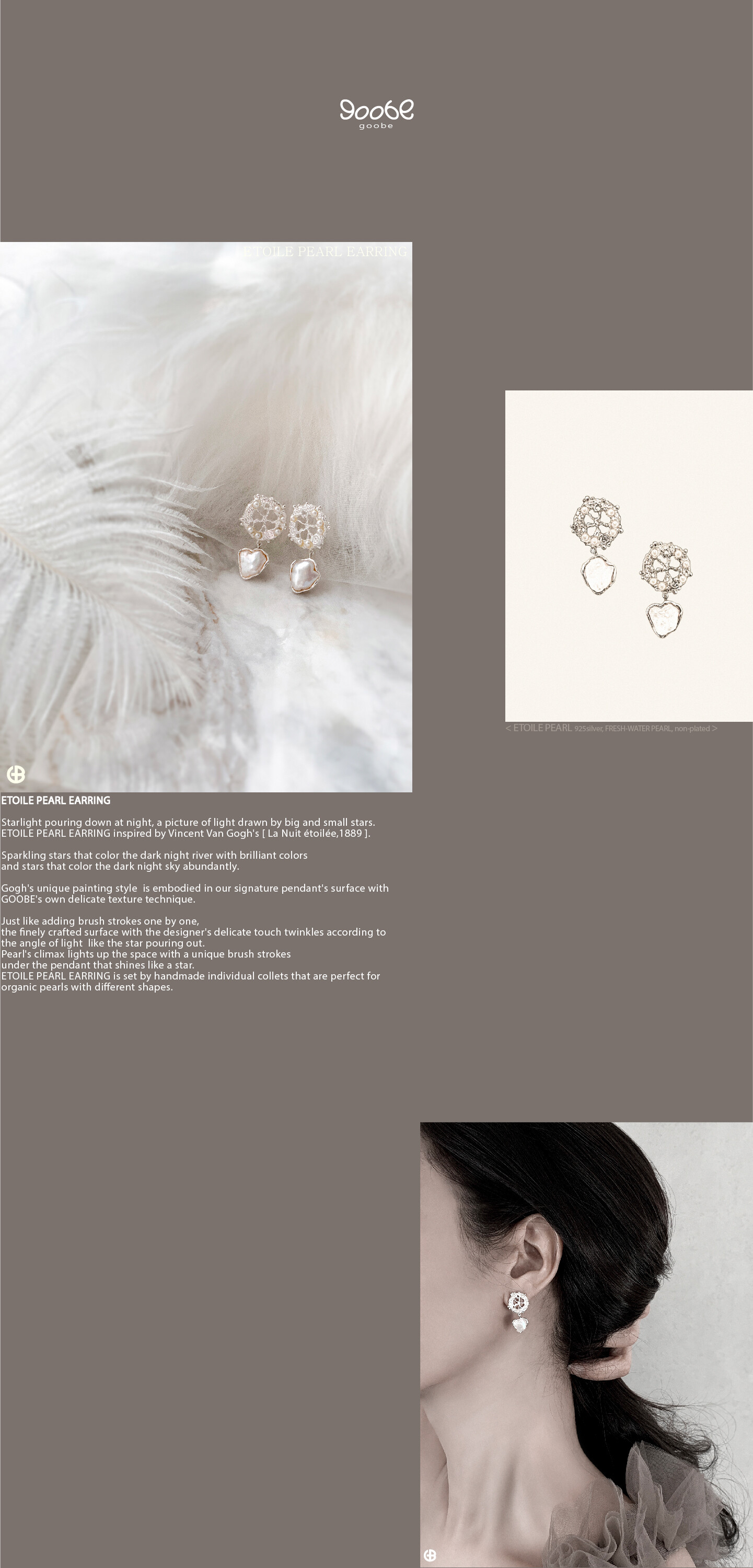 Just like adding brush strokes one by one, the finely crafted surface with the designer's delicate touch twinkles according to the angle of light like the star pouring out. Pearl's climax lights up the space with a unique brush strokes under the pendant that shines like a star. ETOILE PEARL EARRING is set by handmade individual collets that are perfect for organic pearls with different shapes. ----------------------------------------------------------------------------------------------------------------------------------------