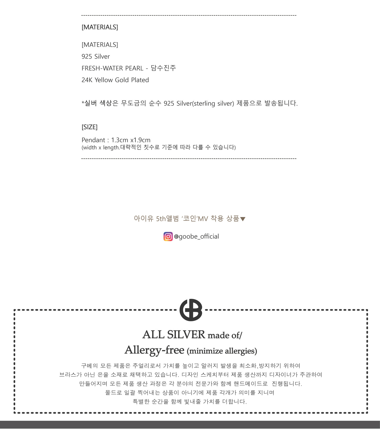 * GOOBE는 귀금속으로서 상품의 가치를 높이고 착용 시 알레르기 반응을 최소화 하기 위해 은 함량을 준수한 925 Silver만을 사용합니다.