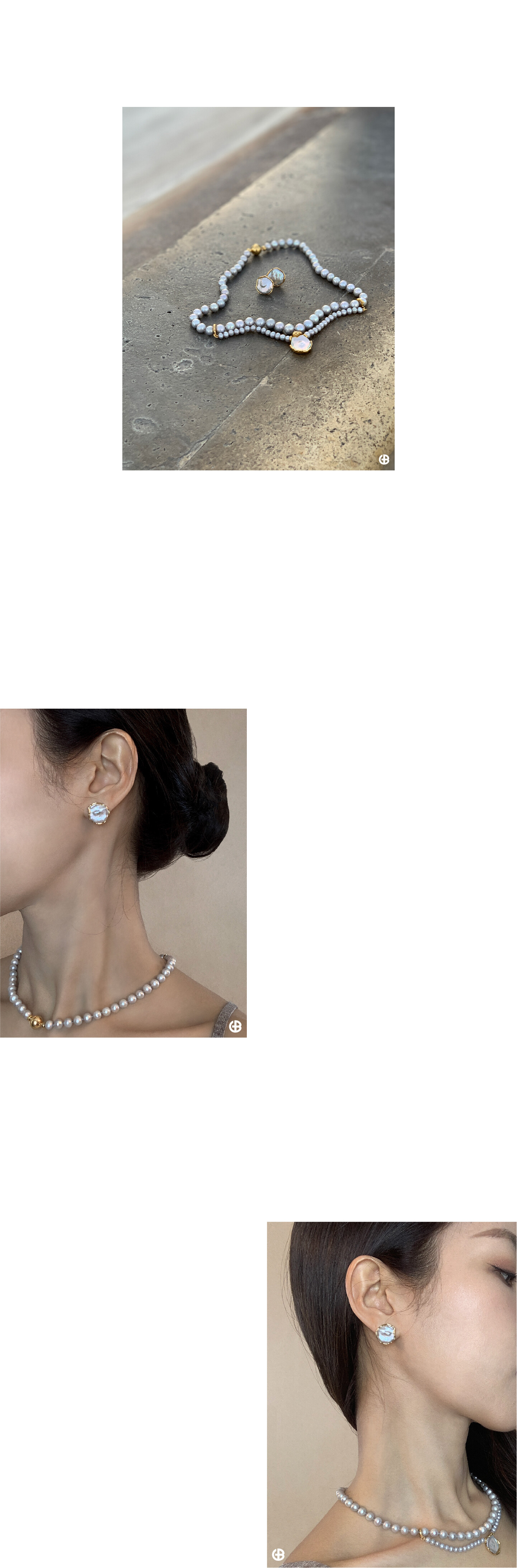 The new version of THE ONE STROKE EARRINGS. Bright gray pearls give you a calm elegance. and that calm gray lights make these feel like the perfect feminine accoutrement to your day and night look.