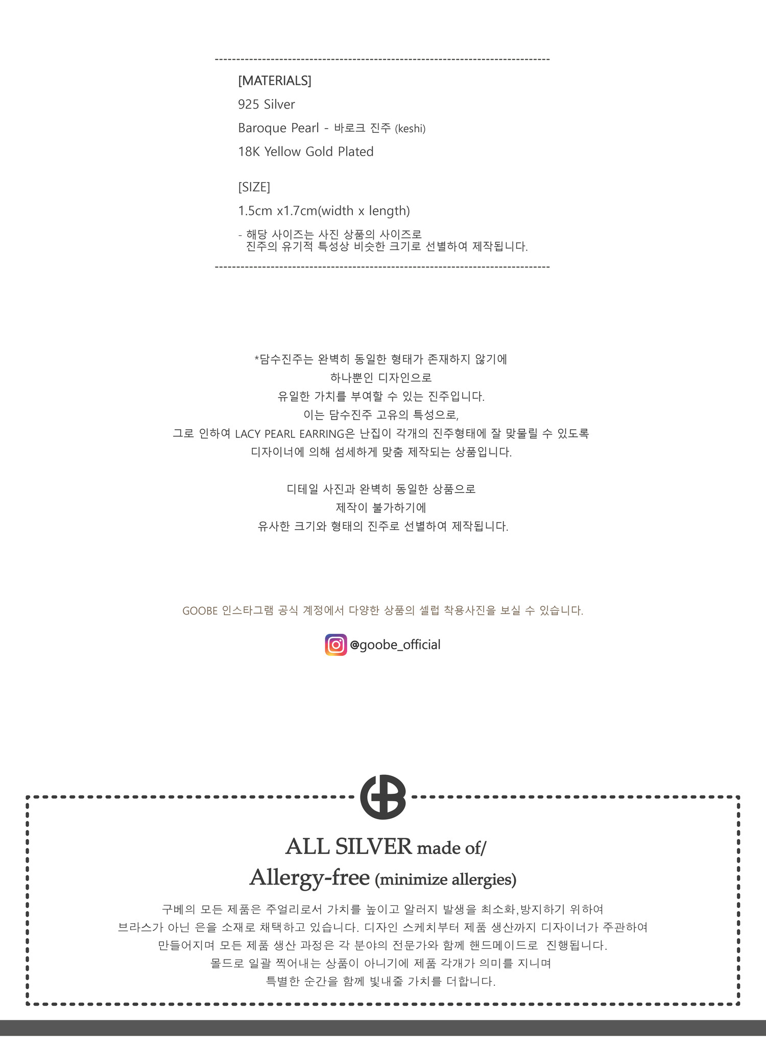 THE LACY PEARL EARRINGS feature customized setting for each pearl which has the nature of different shape and size.