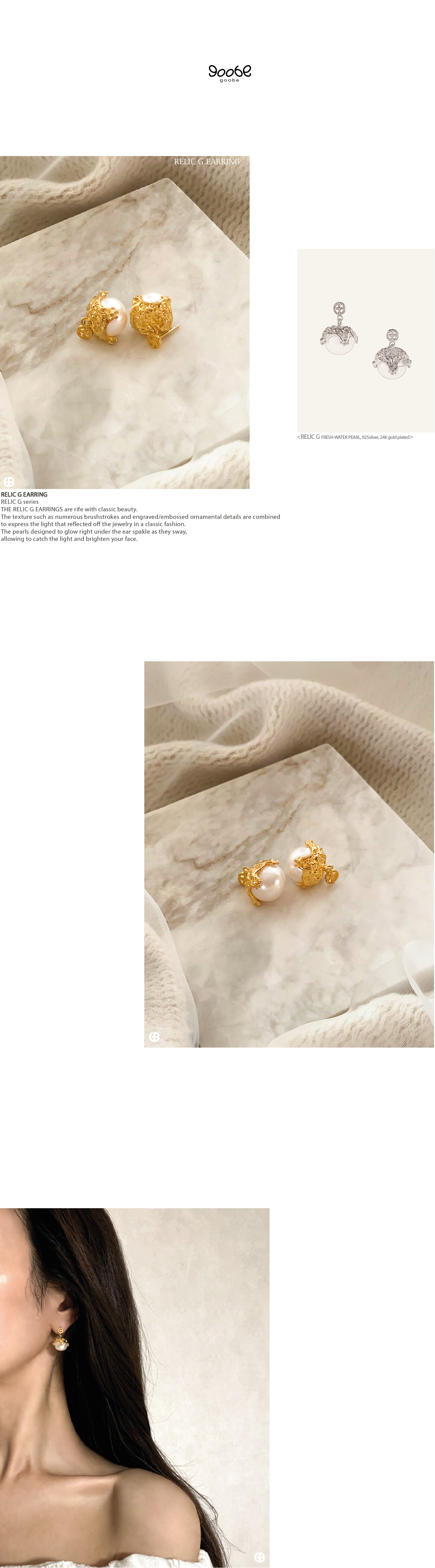 * GOOBE는 귀금속으로서 가치 보존/ 알레르기 반응 최소화 합치를 위해 도금에서도 일반 액세서리 도금이 아닌 real gold가 함유된 plated도금 방식을 사용합니다.