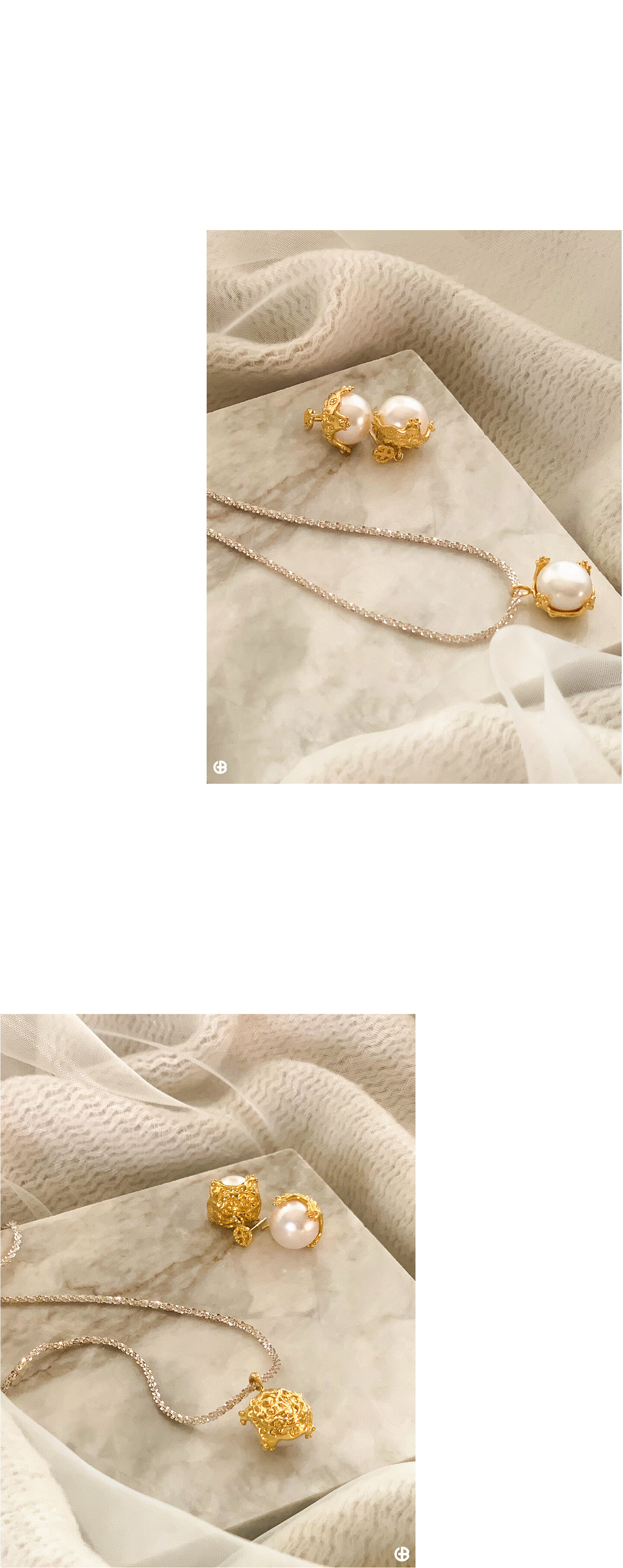 물감을 두껍게 덧발라 흘러내리는 듯한 붓터치의 질감과 음각/양각의 작은 디테일들이 주얼리에 반사되는 빛을 고풍스럽게 표현합니다.
