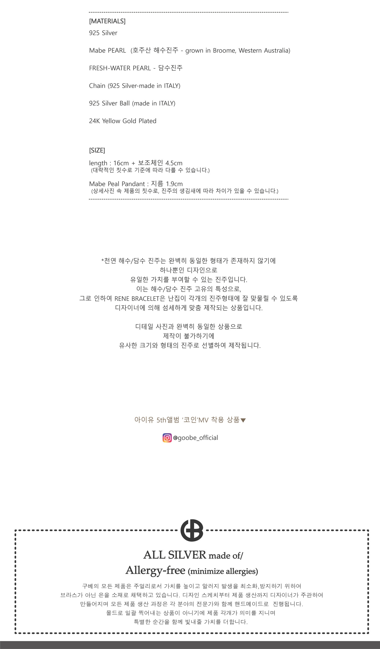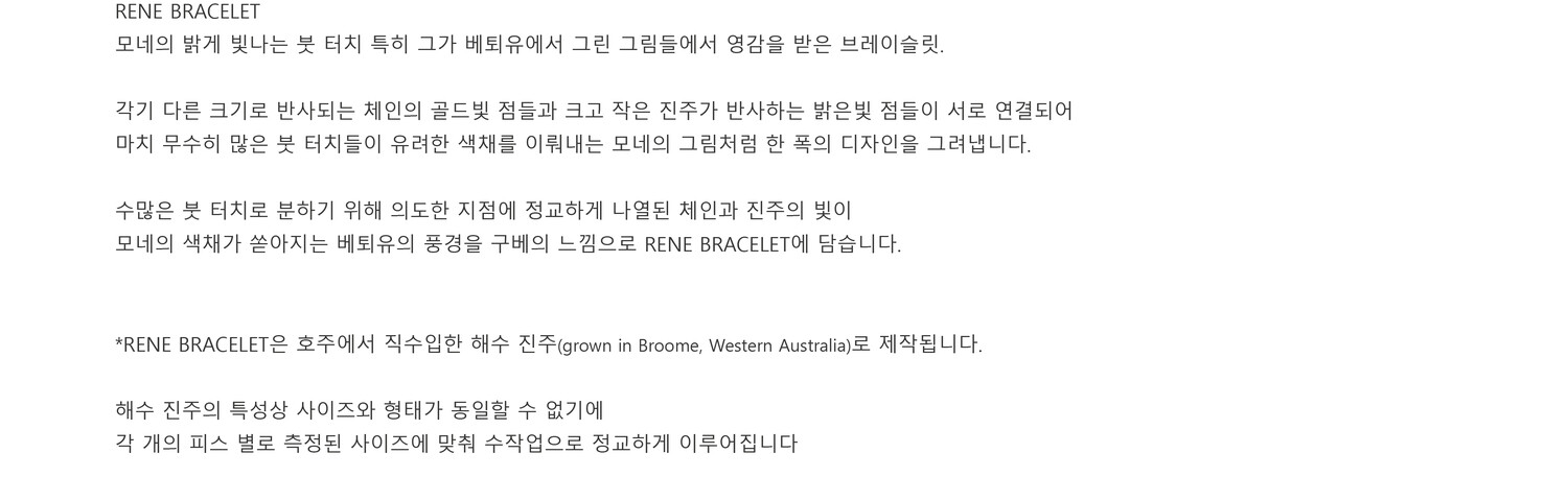 *RENE BRACELET은 호주에서 직수입한 해수 진주(grown in Broome, Western Australia)로 제작됩니다.
