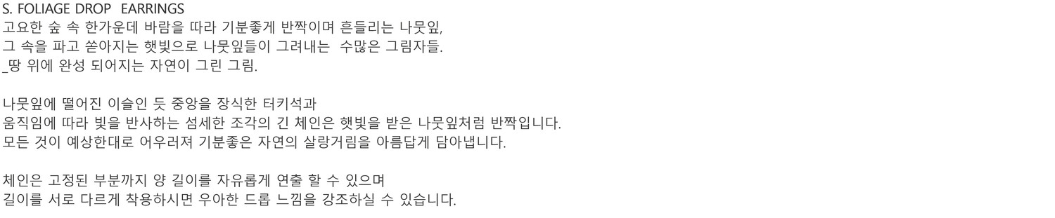 그럼에도 불구하고 모든 금속 소재와 도금은 시간이 지남에 따라 자연스럽게 변색이 됩니다. 오랜시간 유지하기 위하여 착용 시 주의사항과 보관법에 유의해 주시기 바랍니다.