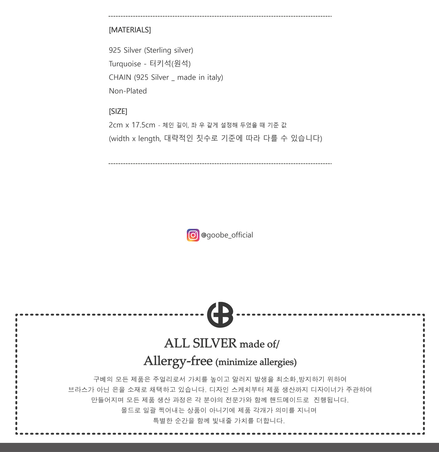 * GOOBE는 귀금속으로서 상품의 가치를 높이고 착용 시 알레르기 반응을 최소화 하기 위해 은 함량을 준수한 925 Silver만을 사용합니다.