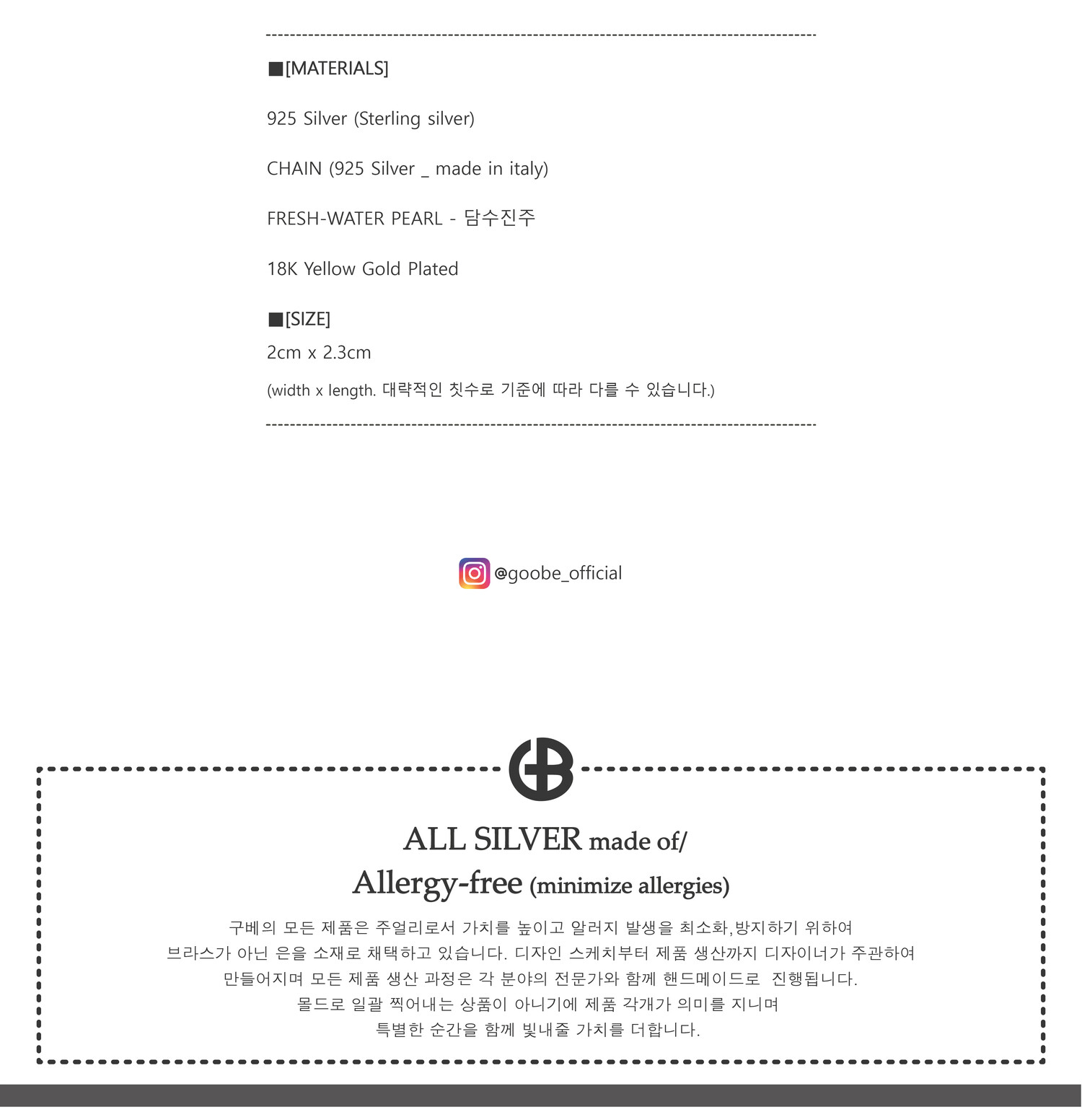 * GOOBE는 귀금속으로서 상품의 가치를 높이고 착용 시 알레르기 반응을 최소화 하기 위해 은 함량을 준수한 925 Silver만을 사용합니다.