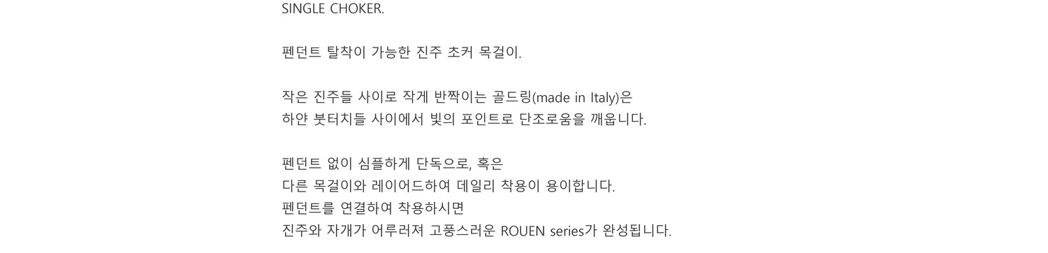 단독으로 심플하게 연출하기 좋고 룩에 따라 팬던트를 연결하거나 다른 네크리스 상품들과 함께 레이어드하여 연출하기에도 적합한 아이템입니다.