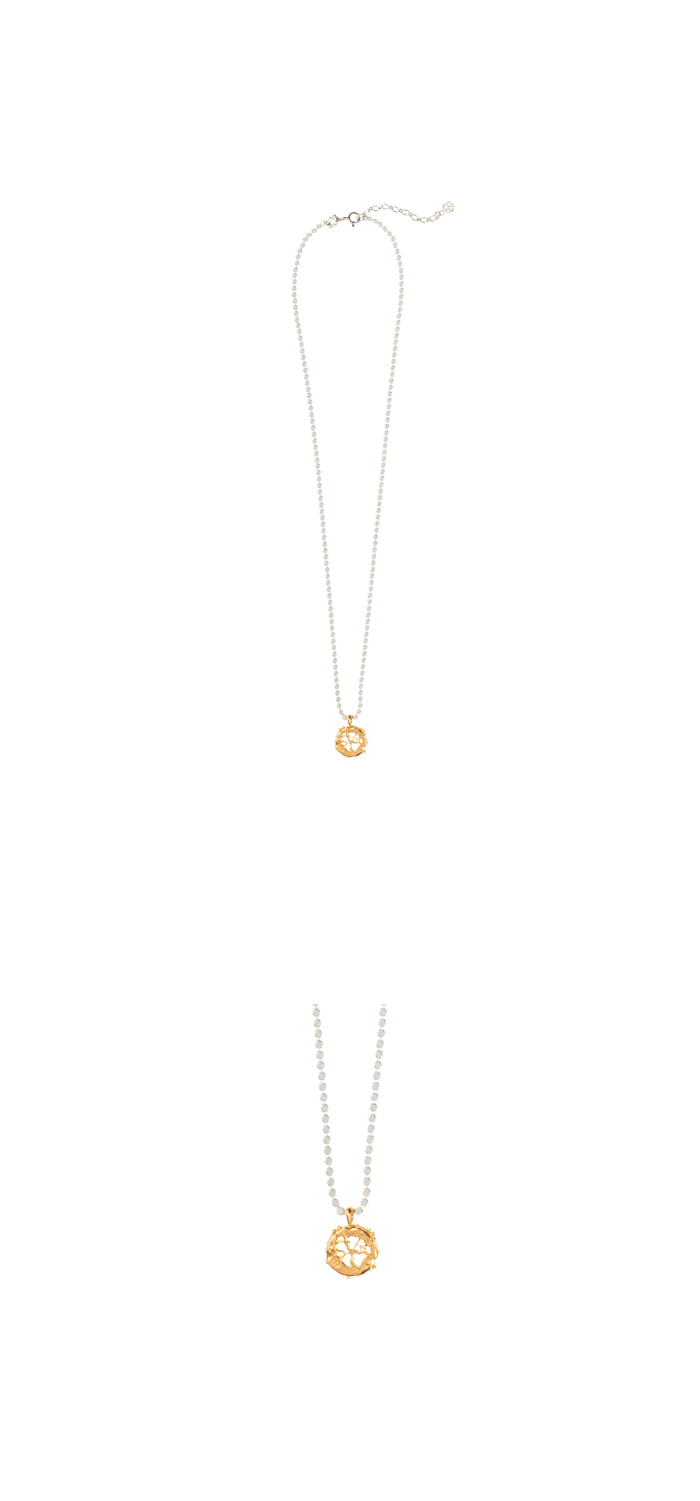 작은 동그라미들로 빛나는 체인과 함께 어우러져 전체적으로 반짝이듯 일렁이는 색채의 현란함을 표현합니다.