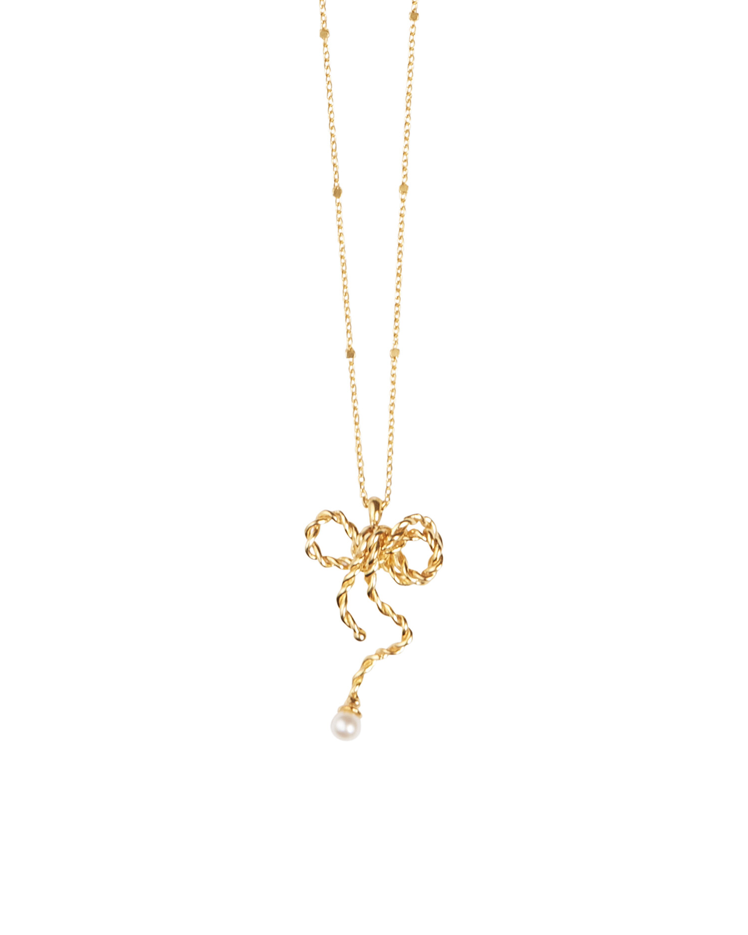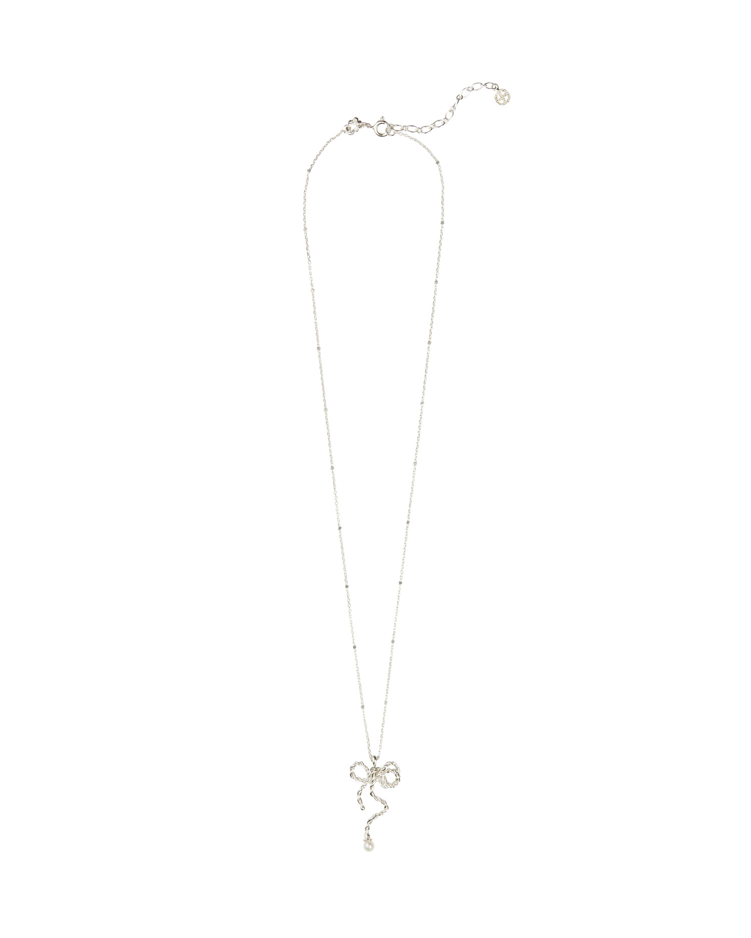 금속의 꼬임에 따라 빛이 다양하게 분산되어 은은하게 빛나는 리본의 형상을 그립니다. 촘촘히 꼬인 금속 실타래 끝에 진주가 작게 고정되어 가장 빛나는 붓 터치로 마무리 되었습니다.
